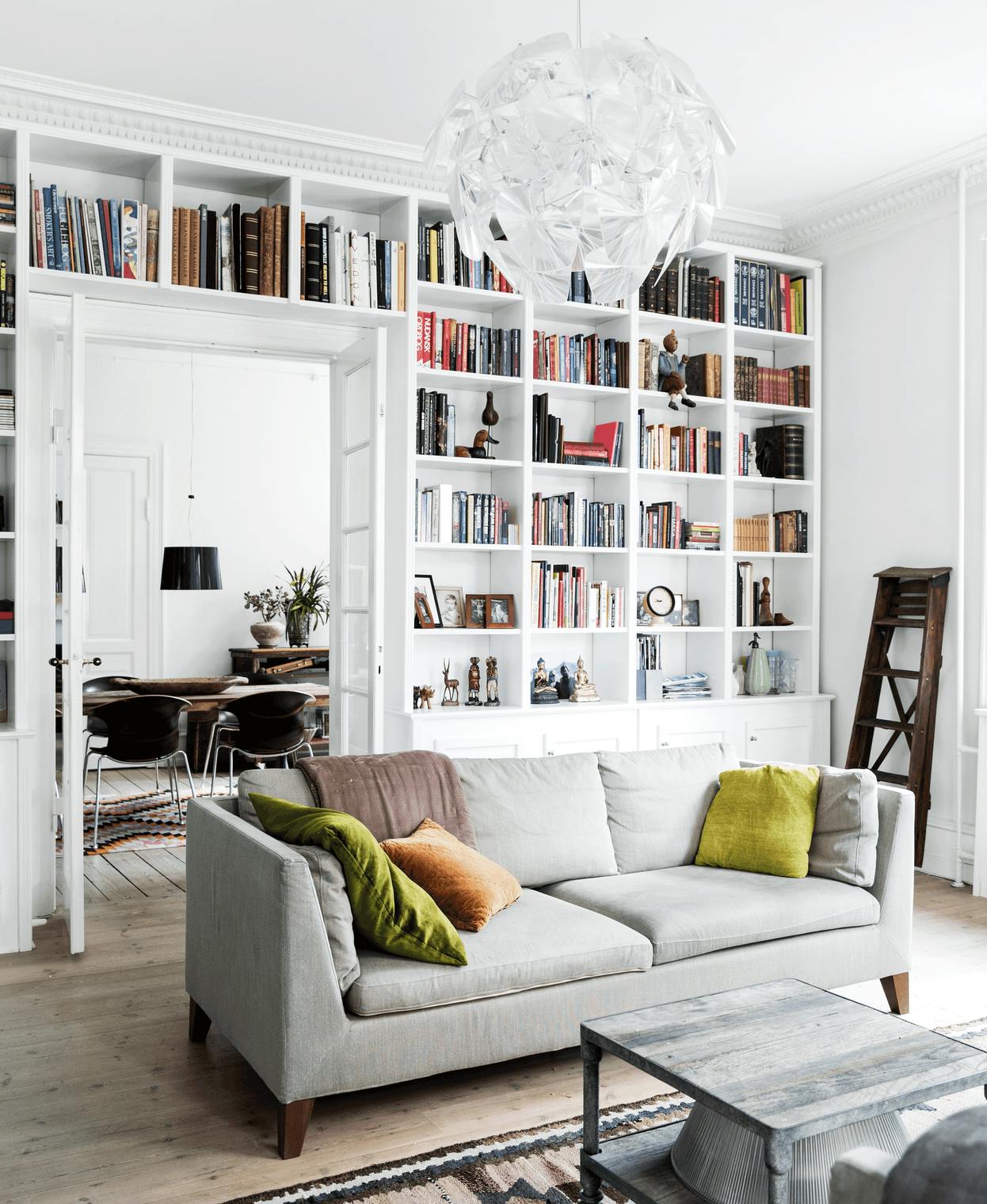 Har du mere plads at boltre dig på, er en bogreol fra gulv til loft måske en idé. Det danner en flot ramme om dele af væggen og kan være en nem måde at tilføre bedre rumklang og mere farve til indretningen. Overvej, om bogreolen skal bryde med farven på væggen, så man tydeligt kan fornemme forskellen fra væg til reol.