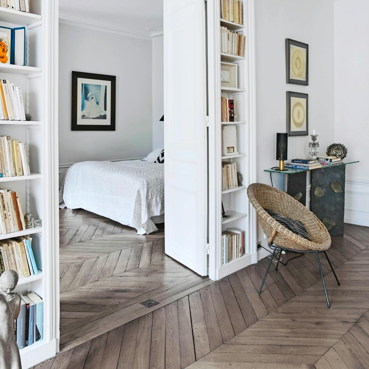 Optimér læsehjørnet med en indbygget bogreol, der udnytter pladsen optimalt og skaber harmoni i indretningen. Det kan især være flot, hvis den går over og rundt om dørkarmen og på den måde er med til at adskille rummene.