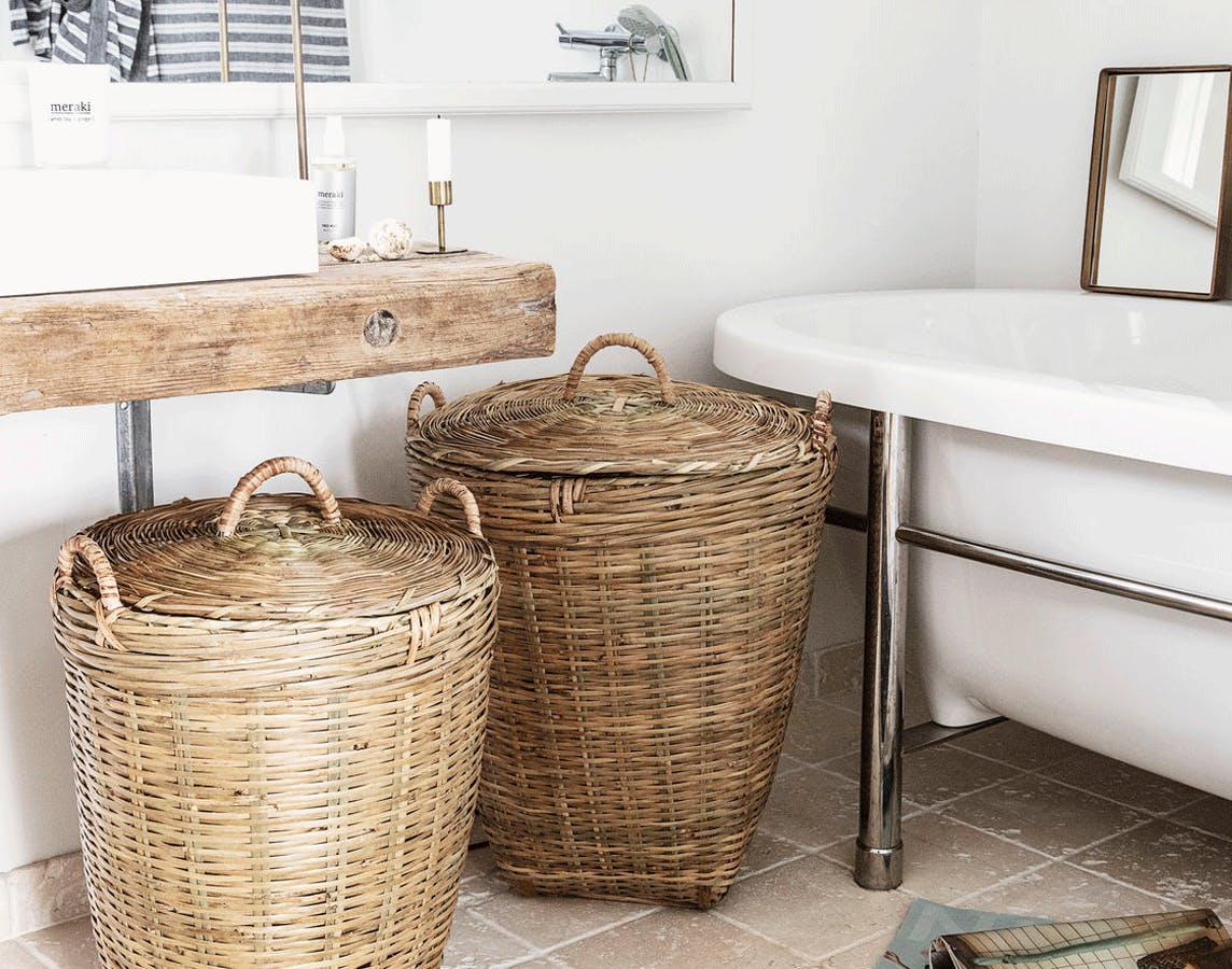 Tilføj varme og spastemning til indretning ved at vælge vasketøjskurve i lys bambus.