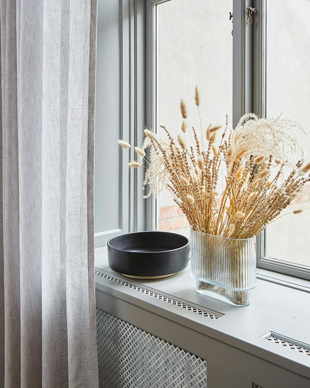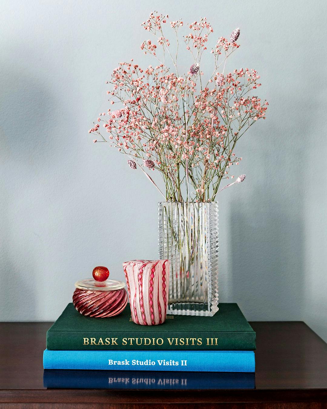 Når du skal vælge en vase, kan du tænke over, hvad den skal bidrage med. Hvis du for eksempel har en vindueskarm eller kommode med mange små pyntegenstande, vil en stor vase være god til at bryde med udtrykket og bidrage med noget volumen. Det ser nemlig bedst ud, når genstandene, der står sammen, varierer i størrelse, farve og form.