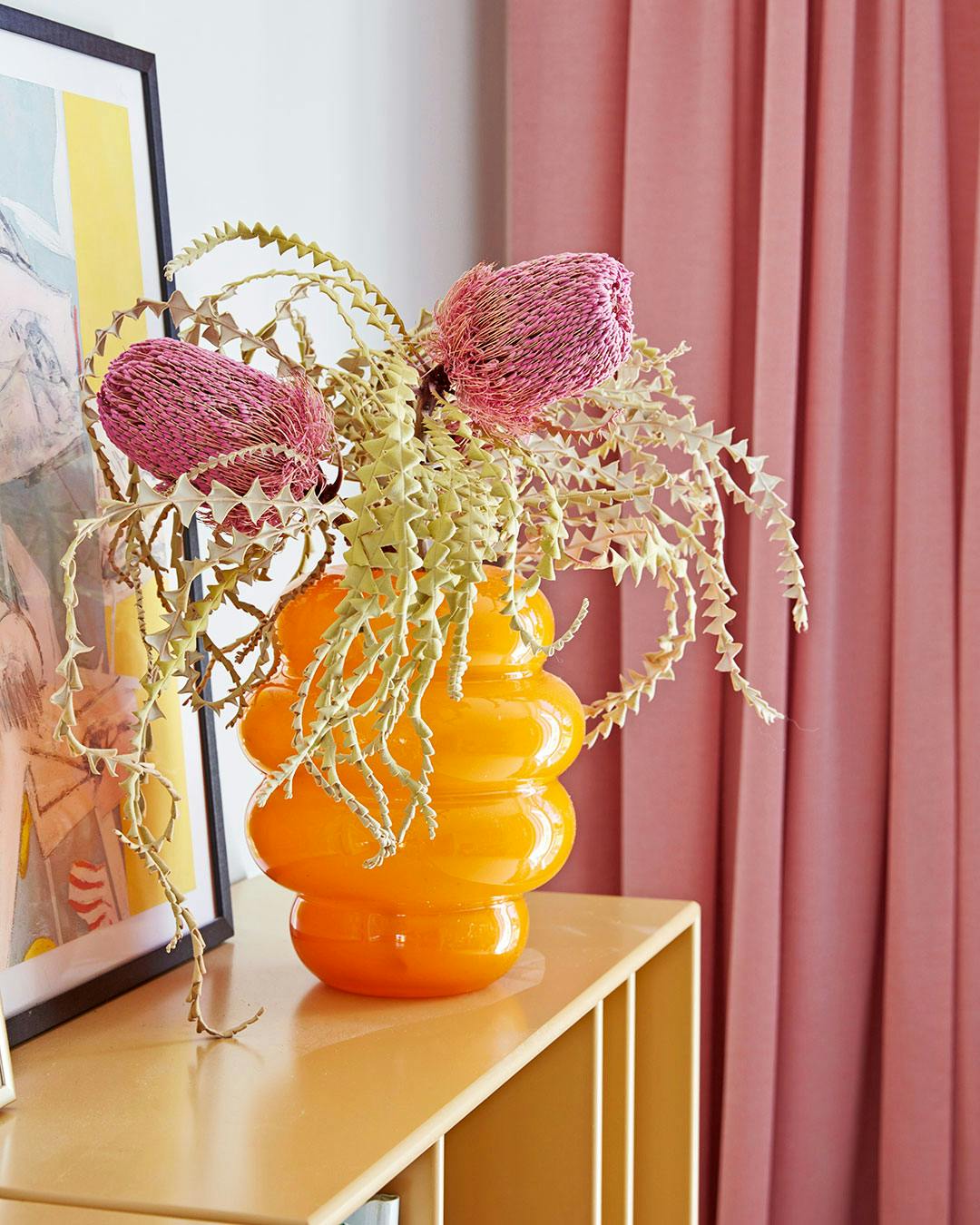 Den orange vase er vintage. Foto: Mia Mortensen.