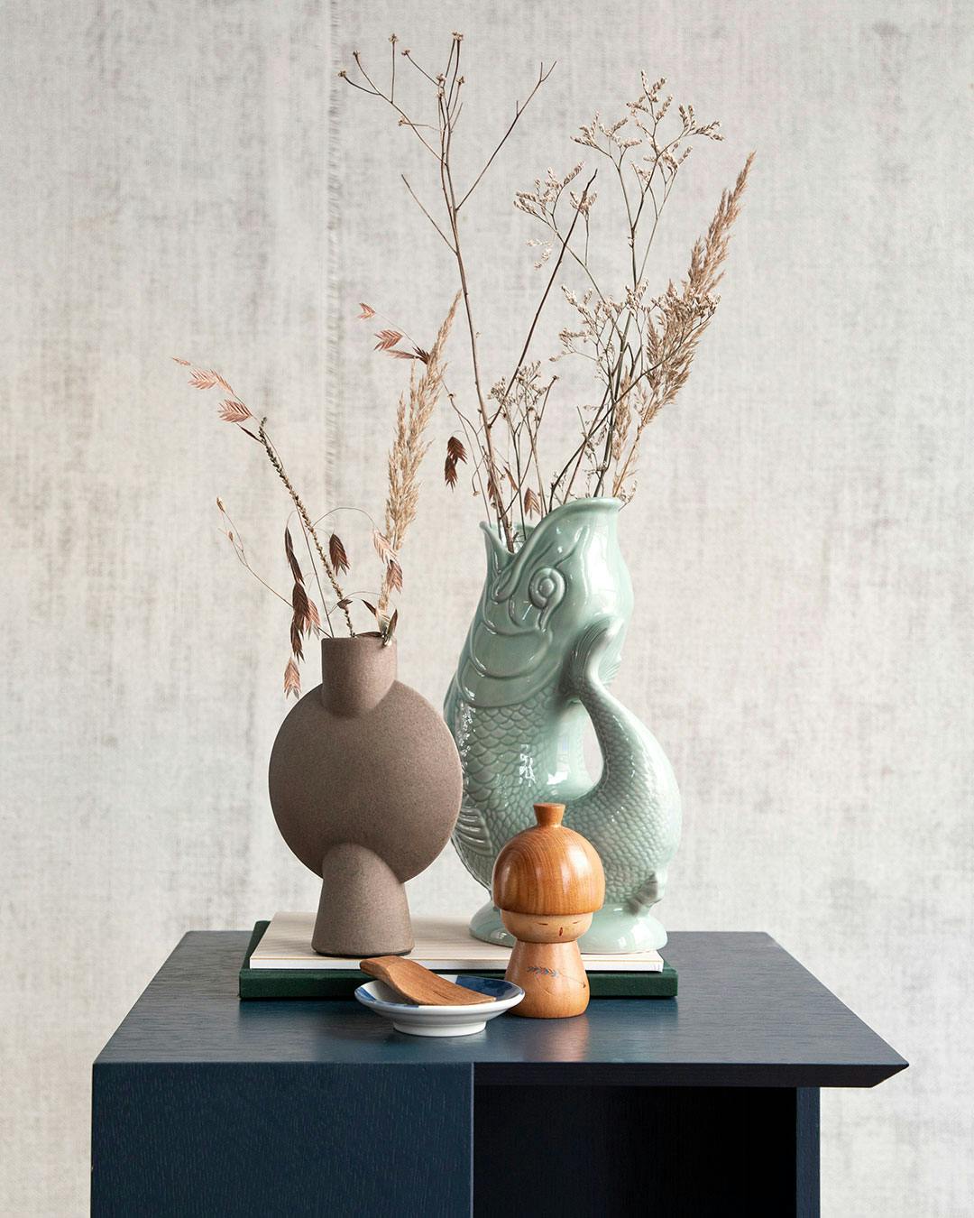 En vase kan være med til at understrege den stil, du gerne vil bevæge dig i retning af, uden du behøver at gå all in. Det er derfor en god måde at prøve nye trends eller stilarter af. Det kan for eksempel være, at du er faldet for en bestemt farve, men ikke lige har mod på at male en hel væg lyserød. Det kan også være, du er vild med marmor, men ikke har mulighed for at investere i et bord med marmorbordplade.