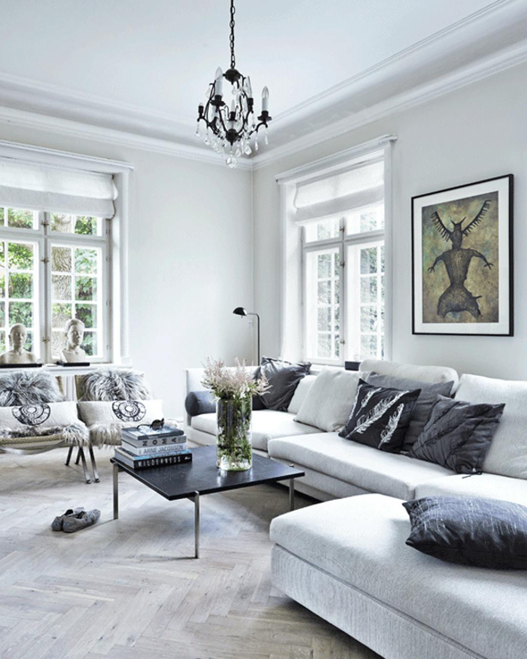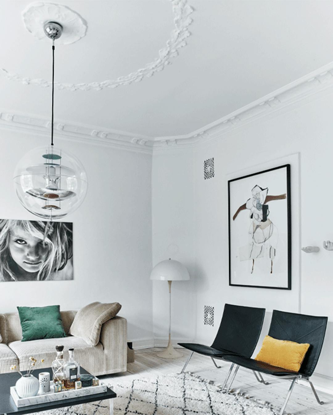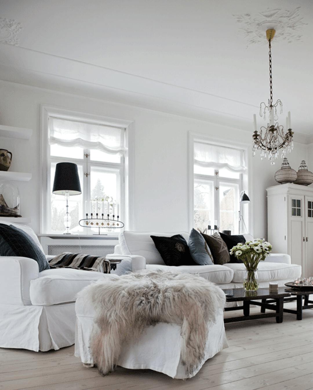 Du kan også vælge at gå 'all in' i hvide nuancer. Så får du et meget enkelt og roligt udtryk i stuen, som du nemt kan slappe af i.