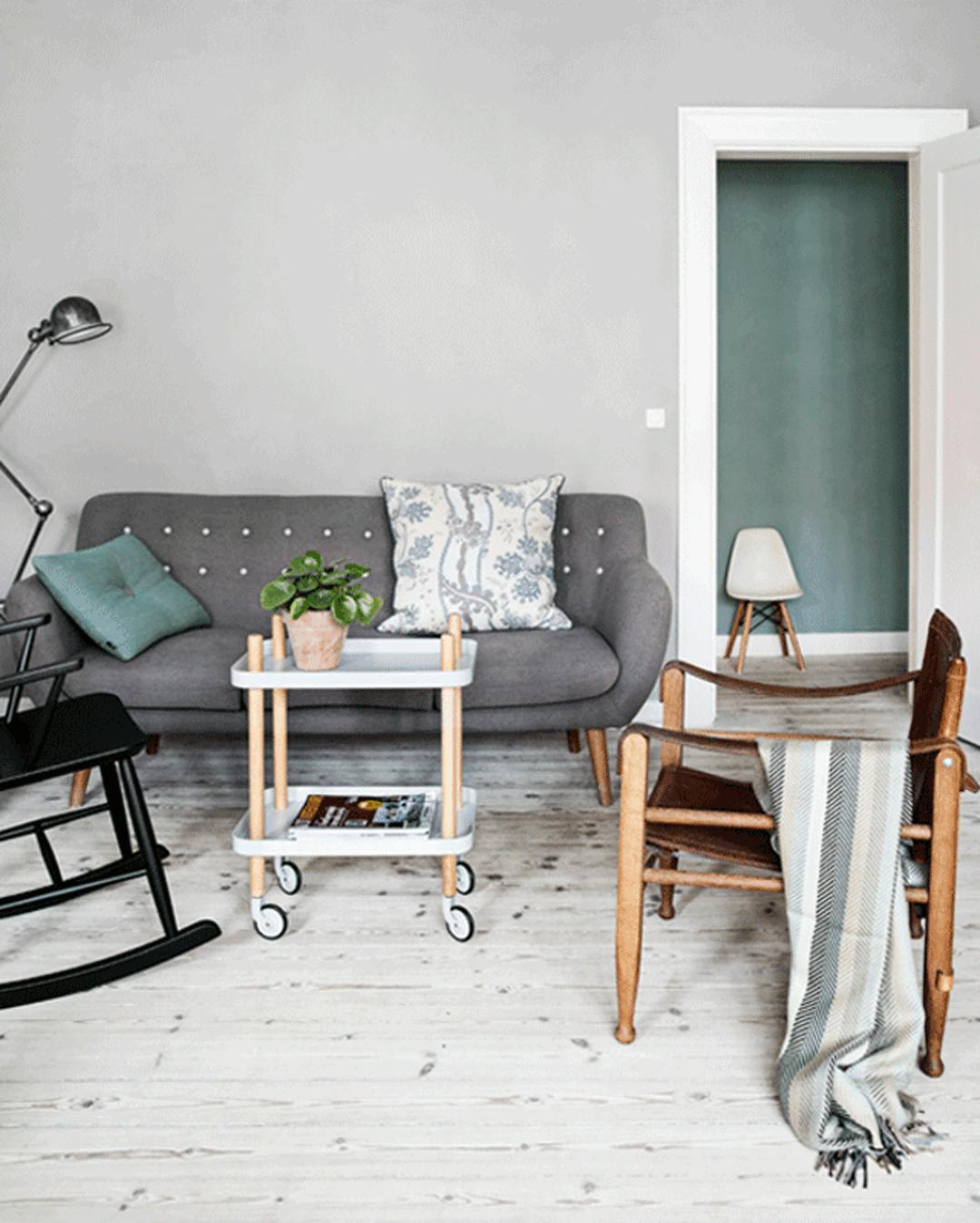 Gør dit hjem mere interessant ved at mikse forskellige slags møbler. Gyngestolen og safaristolen skaber sammen med den nye sofa og sofabordet en perfekt balance.