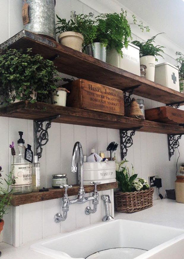 Brug væggene til at tilføje dit køkken lidt rustik charme. De fleste mennesker har en nøgen væg i køkkenet, hvor de her ophæng sagtens kan hænge. Brug dem til at hænge planter op med (Se: Lav et fint planteophæng!), viskestykker eller fine kopper.