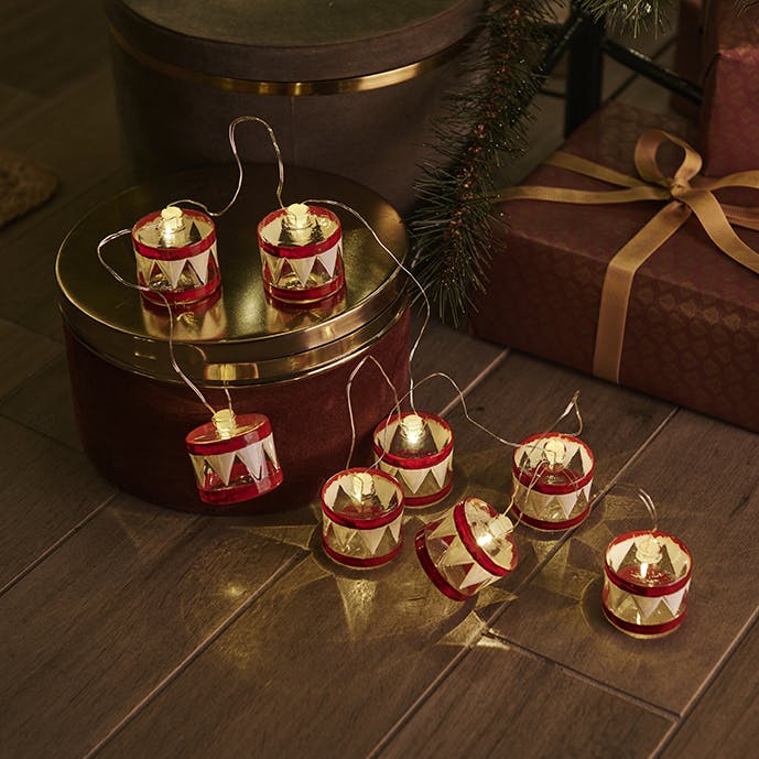 Trommen er et klassisk og elsket stykke julepynt, og vælger du en lyskæde med kønne, traditionelle juletrommer, har du dekoration og lys i ét. Læg lyskæden tilfældigt i en glasvase eller på julebordet, eller hæng den på juletræet sammen med de levende lys juleaften.
