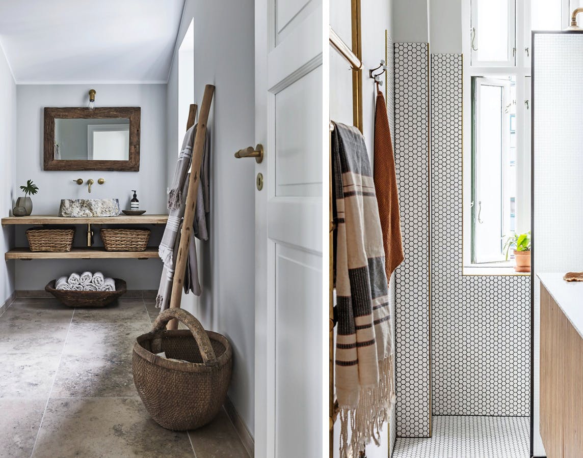 Badeværelse hos @juliek.brandt. Gør som Julie og rul håndklæderne, det giver et organisk udtryk. Foto: Birgitte Wolfgang