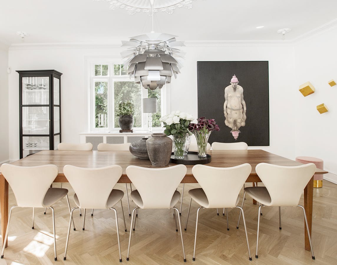 Nedenfor har vi samlet 6 spisestuer, der alle har den ikoniske stol stående.