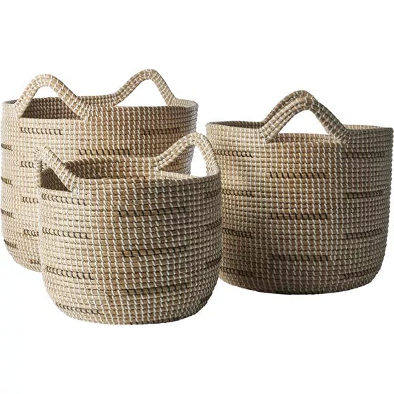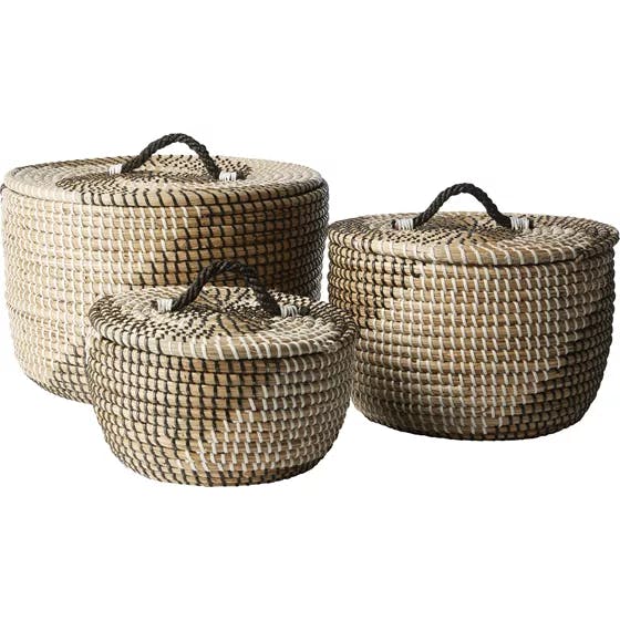 Kurvesættet her er perfekt, når du gerne vil gemme dine ting lidt væk eller undgå, at de bliver støvede. Kurvene er håndlavet i naturfarvet søgræs og kan variere i udseende.