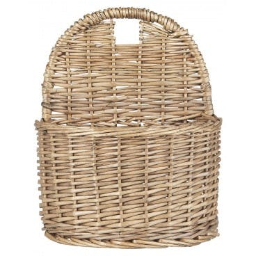 Vægkurven er lavet af hel pil med et hul øverst - lige til at hænge op på en krog eller knage. Den vil pynte på altanen, terrassen eller indenfor til opbevaring af småting eller planter. Kurven fås også i en firkantet model.