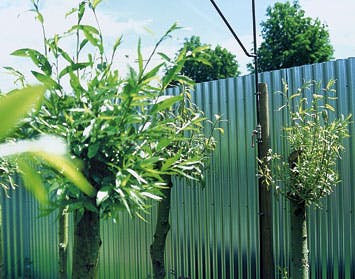 Inden for 'murene' finder man en grøn bolig med gangarea-ler, værelser og møbler. Når man træder ind i haverummet, går man et trin op på en sti, der fører rundt til de forskel-lige afdelinger. Stien er lavet af kraftige, rustne jernplader af den slags, som anvendes på byggepladser, og den fører hen til en badeafdeling i den ene ende og til et spisekøk-ken i den anden. Badeafdelingen er ganske enkel. Et stort 600 liters trug, som ellers anvendes i landbruget, gør det ud for badekar med en bruser monteret ovenover.