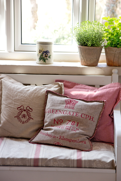 For at få den helt rigtige countrystemning, har Fru Pedersen indrettet sit hjem med varme, hvide farver. De fleste møbler er derfor malet cremefarvede, og i stedet for at have mange billeder hængende, giver hun plads til hylder og knager i sin stue. Det giver hende større muligheder for at ændre indretningen alt efter årstiden.