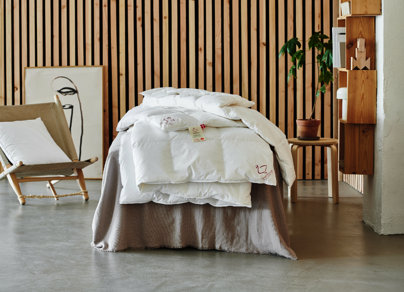 Mange dyner og puder bliver lavet af dun og bomuld, og du kan sikre dig, at dyrene har haft det godt, ved at undersøge, om produktet er anbefalet af Dyrenes Beskyttelse. Så er du blandt andet sikker på, at dyrene lever naturligt i små flokke med adgang til et udendørsareal med god plads og badevand, samt at de har en naturlig døgnrytme.