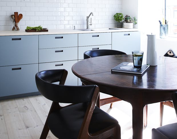 Kom med ind i et smukt drømmekøkken, der rent faktisk er lavet for mindre end 50.000 kr. Ikke kun fordi ejerne var budgetbevidste, men også fordi de ønskede et personligt køkken med kreative løsninger. – Fra starten var vi enige om, at selvom der findes mange drømmekøkkener, ligger mange af dem i en prisklasse, som overstiger, hvad vi ville bruge. Vi kunne nemt finde køkkener fra 100.000 kr. og op, men vi fandt ud af, at ved at lave mange af tingene selv kunne vi faktisk få det køkken, vi drømte om, for 50.000 kr., fortæller ejeren, rum- og møbeldesigner Jackie Bertelsen, der bor i lejligheden sammen med sin kone og parrets datter. Se også: 10 smukke skandinaviske køkkener