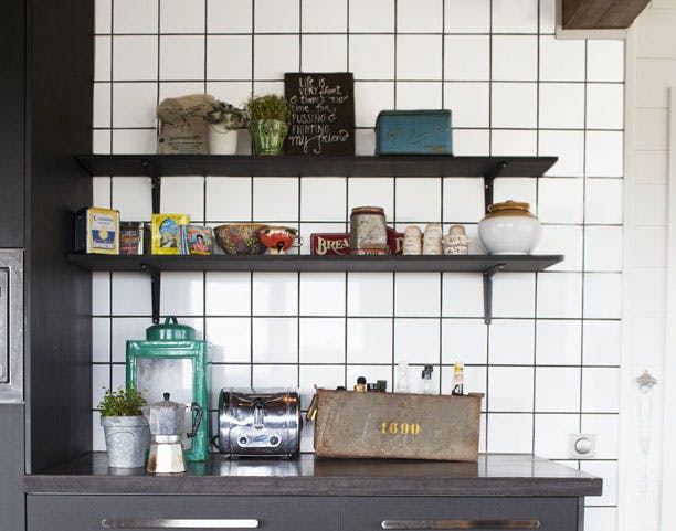 Har du indrettet dit køkken med lukkede overskabe og især hjørneskabe sluger de lys og får dit køkken til at syne mindre og mere koldt, end hvis du sætter åbne hylder op. Skab selv hygge og giv køkkenet farve og personlighed med alverdens grej og kolonialvarer.