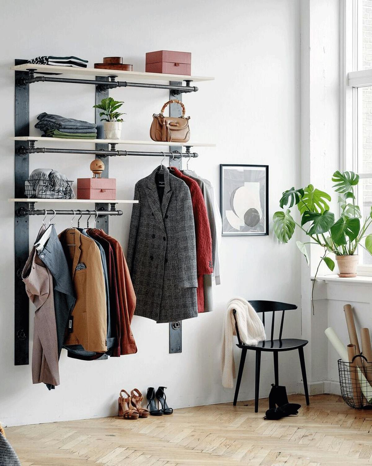 Vandrør har efterhånden fået flere og flere funktioner i indretningen. Hvis du vil have et lidt mere råt og industrielt look, kan du bruge vandrør som din garderobeopbevaring.