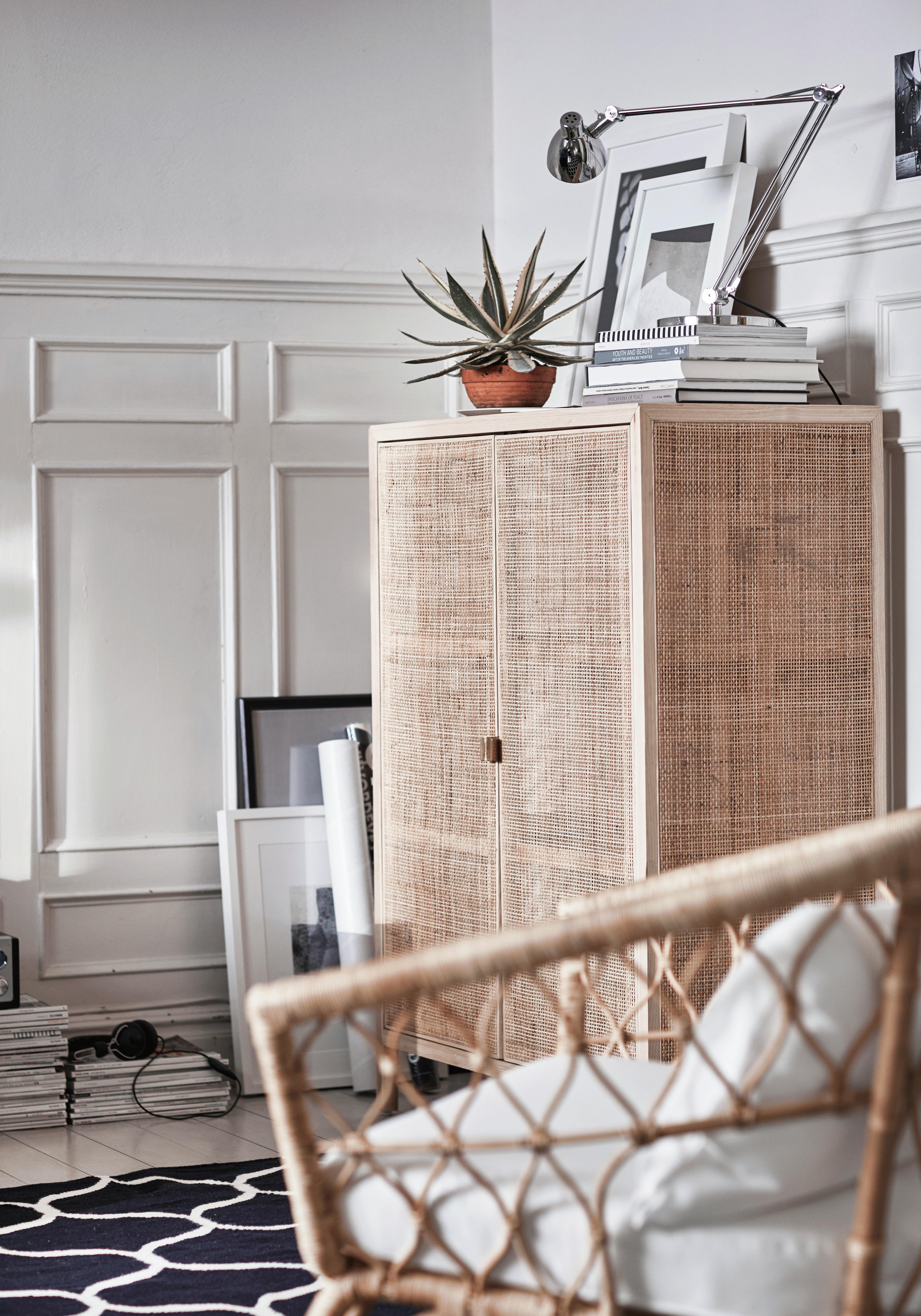 Et af Ikeas mest populære skabe er fra Stockholm-serien. Skabet, der er flettet hele vejen rundt, kan både bruges til tøj og andre ting, du vil have gemt af vejen. Hvis du har brug for mere opbevaringsplads, kan du sagtnes stille to skabe ved siden af hinanden.
