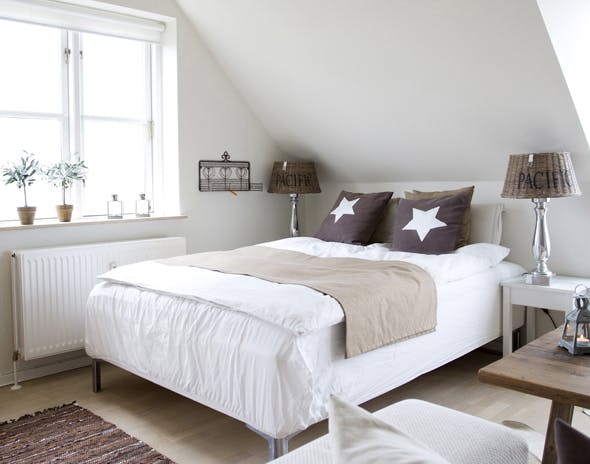 Fyld gerne op med lækre puder, dyner og sengetøj af hør og bomuld, og skab atmosfære og hygge med et lille stilleben af personlige ting med historie.