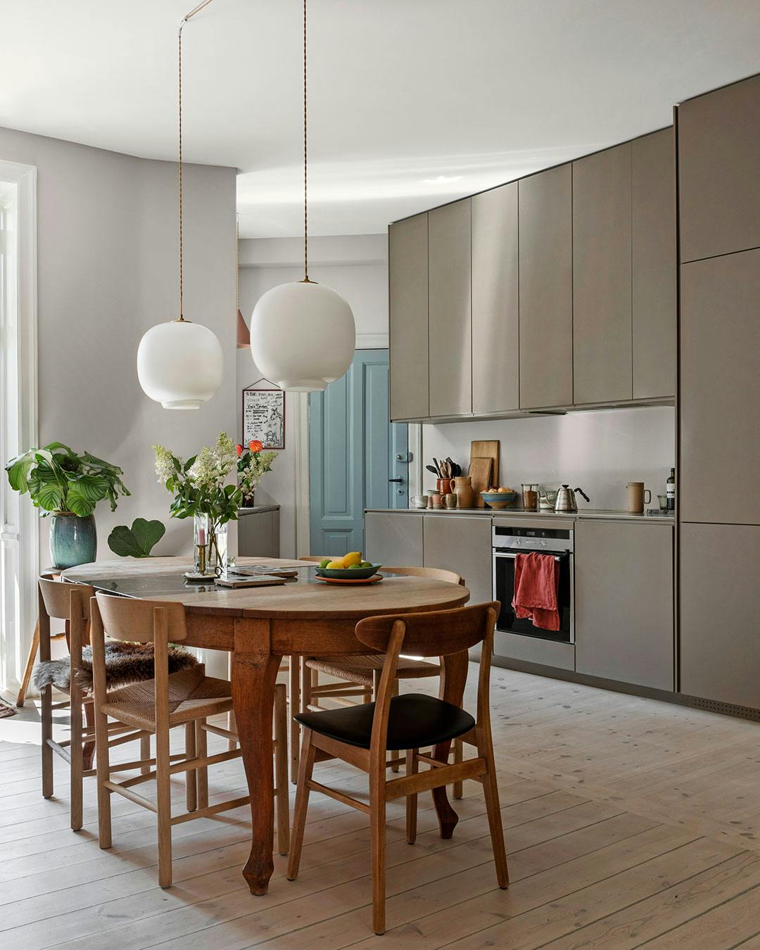 Et gråt køkken behøver langtfra være kedeligt, og er du til det klassiske udtryk, kan dette valg være et godt alternativ til det helt hvide. Alt efter om du vælger et køkken med profilerede fronter, et minimalistisk grebsfrit køkken eller noget helt tredje, kan du nemt give dit grå køkken masser af personlighed. Understreg det klassiske, rene udtryk med service i stål og porcelæn.