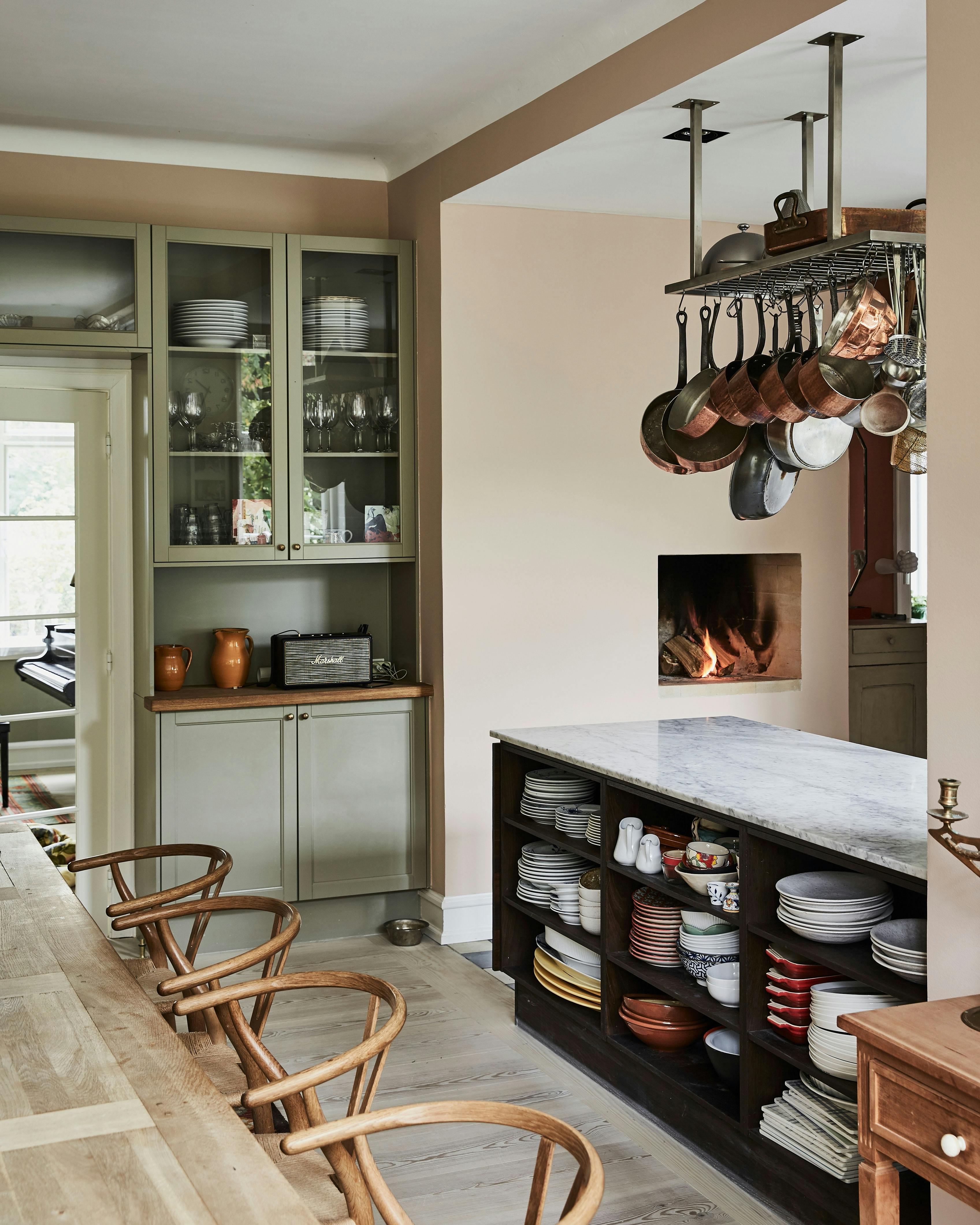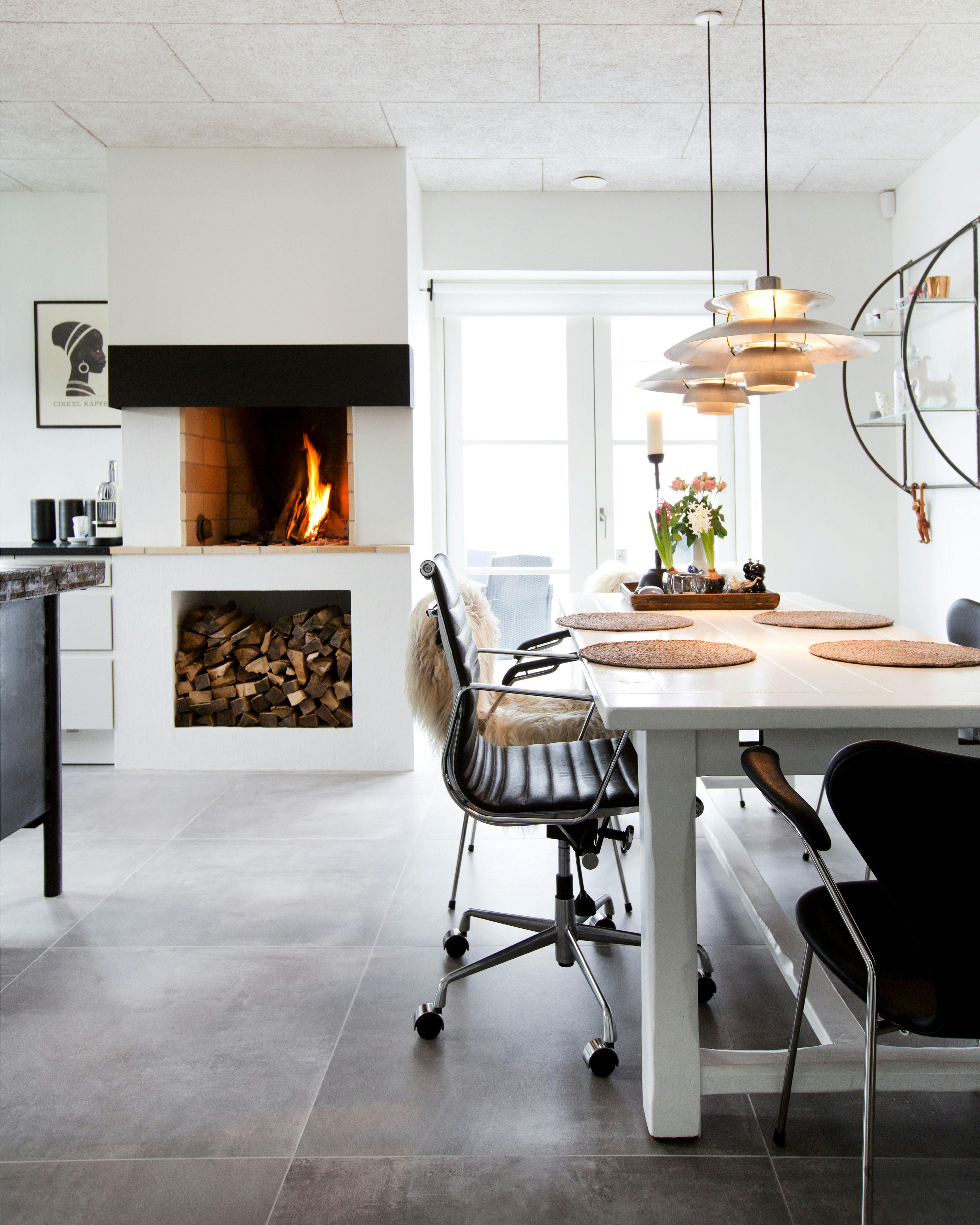 En hævet pejs er en helt unik og meget smuk måde at give køkken-alrummet en rustik og varm følelse.