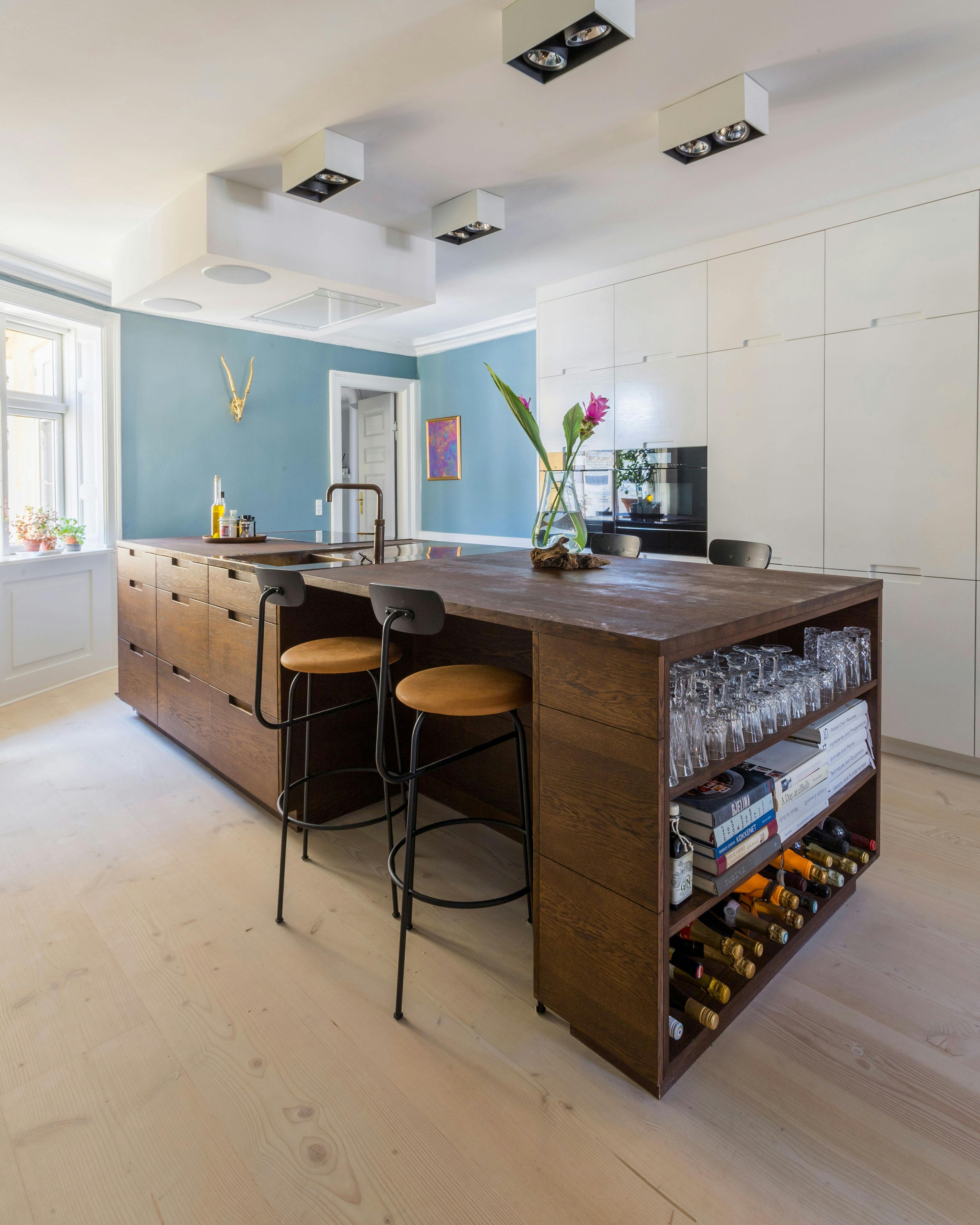 Denne køkkenø er skabt til at sidde ved og hyggesnakke, mens man nyder et godt glas vin. Ejerne går tydeligvis op i madlavning, og derfor skal rummet også indrettes med deres interesse for øje.