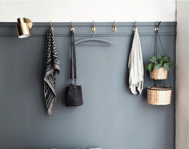 Er du også træt af at gemme strygebrættet væk, hver gang du har brugt det, så hæng det i stedet op på væggen. Det er enkelt og kræver ikke det store håndværksmæssige arbejde. Start med at finde en knagerække eller et par flotte greb og placer dem, hvor du gerne vil have, at strygebrættet skal pryde væggen. Det gør det desuden noget sjovere at få klaret strygetjansen, at brættet er lige til at klappe op og ned.