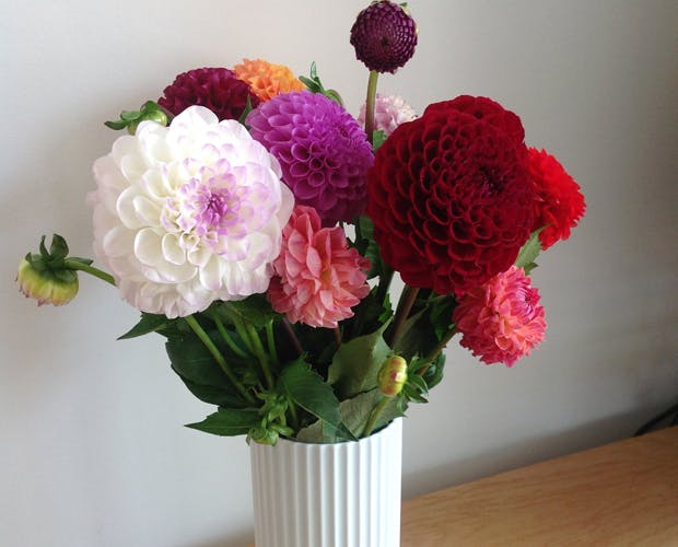 Hilsen fra Debbie: "Lige nu nyder jeg også min nye vase fyldte med de skønneste dahliaer. Og til jul skal der grene og julepynt i."