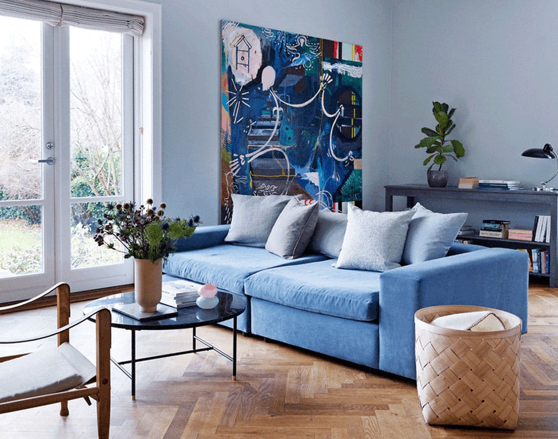 Har du mange forskellige materialer og farver i stuen, er det en god ide at vælge en sofa i afdæmpede farver. FOTO: Pauline Logoff