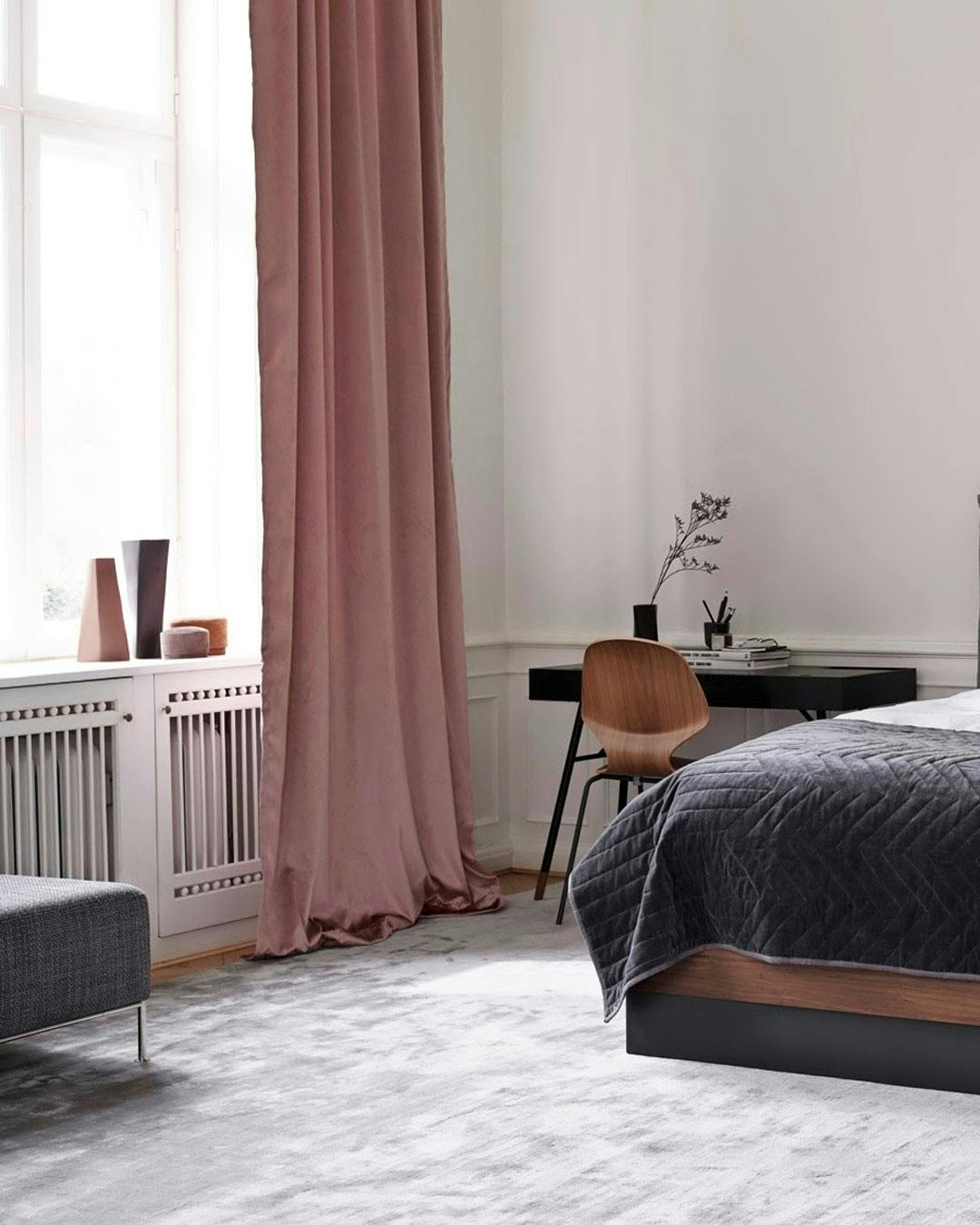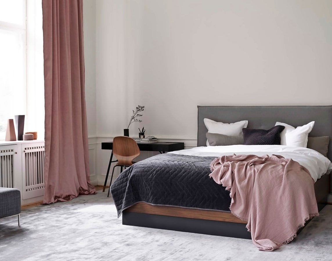 Lad et blødt tæppe være det første og sidste, dine fødder sanser hver dag. Med et væg til væg-tæppe og gulvlange stofgardiner får rummet hotelstil med maner.