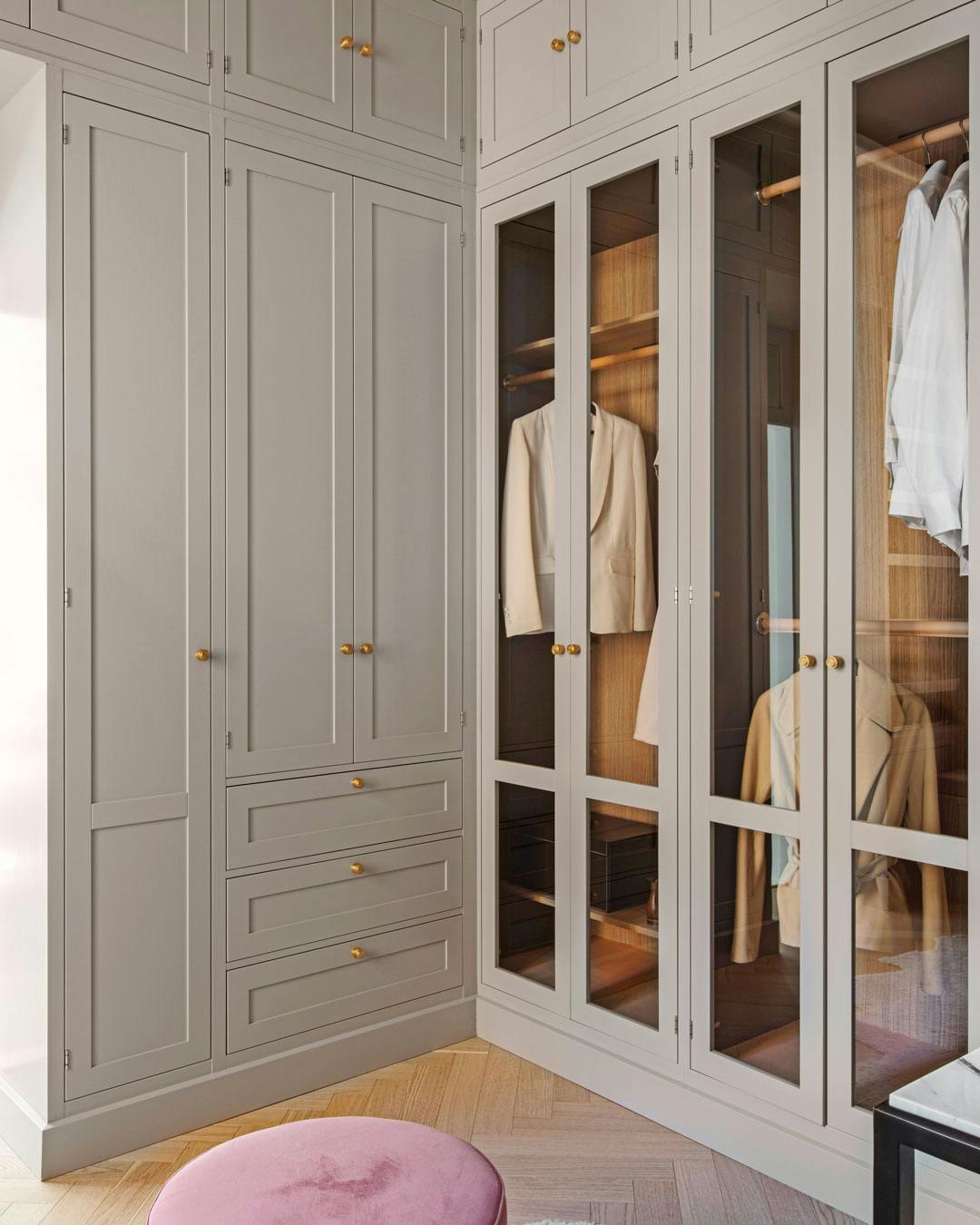 Med glasdøre i klædeskabet kan du vise dit smukkeste tøj frem, men stadig have et ryddeligt soveværelse. Klædeskabsløsning fra Kvänum.