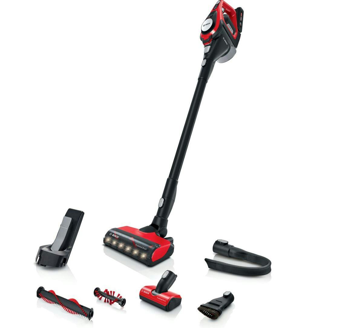 Denne støvsuger er ledningsfri og kommer med en masse tilbehør! Det inkluderer en elektrisk børste, som er ideel til at fjerne dyrehår og støv fra tæpper og polstrede møbler, og en 2-i-1-børste, der er perfekt til at fjerne støv fra trapper og andre høje steder.