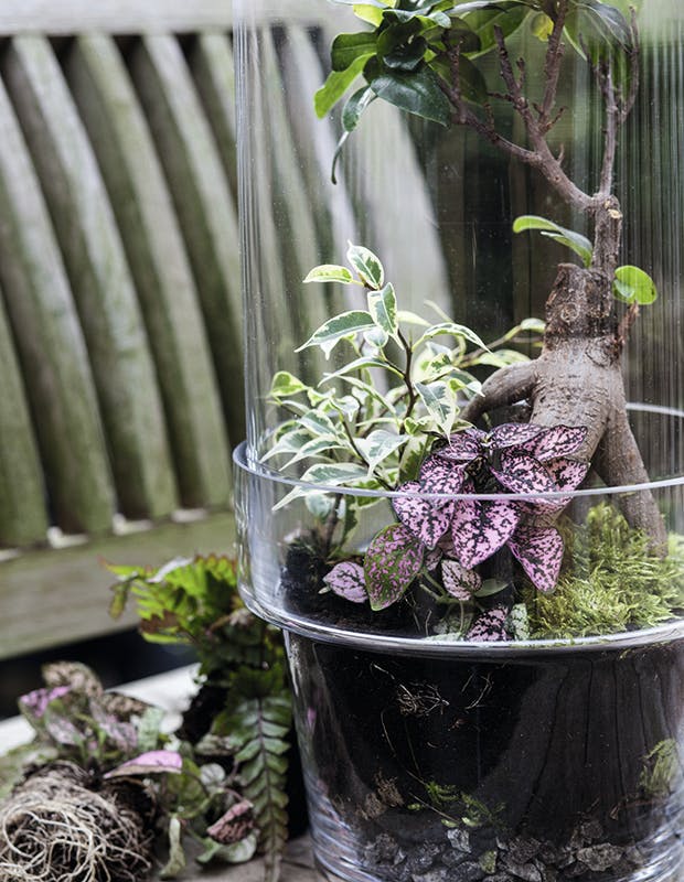 TIP: Vælg planter, der vokser langsomt, hvis beholderen lukker til foroven. Så undgår du at skulle plante terrariet om efter kort tid.
