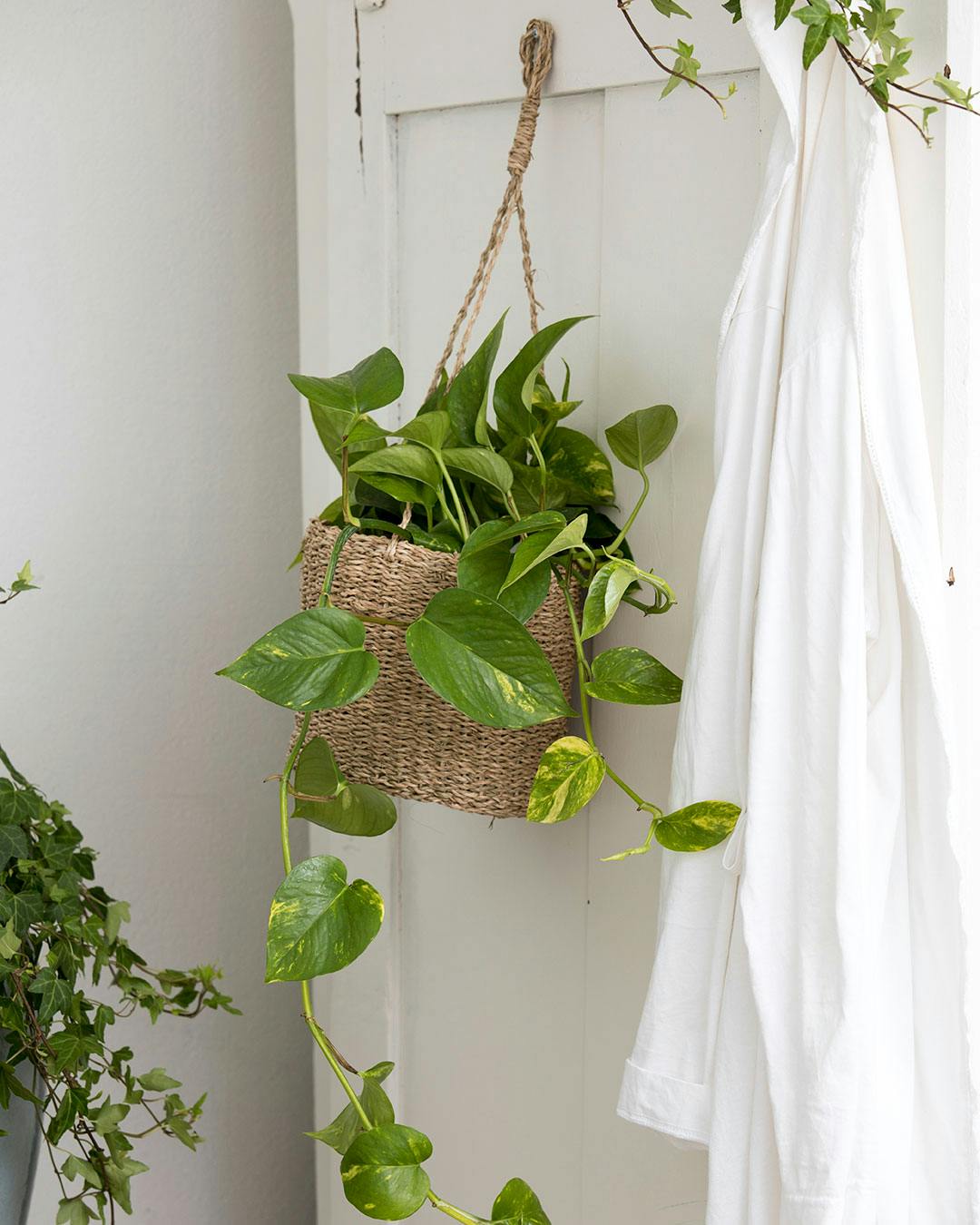Tip: Hvis du ønsker lidt spil i din guldranke, kan du fæstne grenene med små selvklæbende minikroge i forskellige højder på væggen eller oppe under loftet. Det skaber et levende udtryk og – når guldranken vokser sig rigtig lang – en jungle-agtig stemning i rummet!