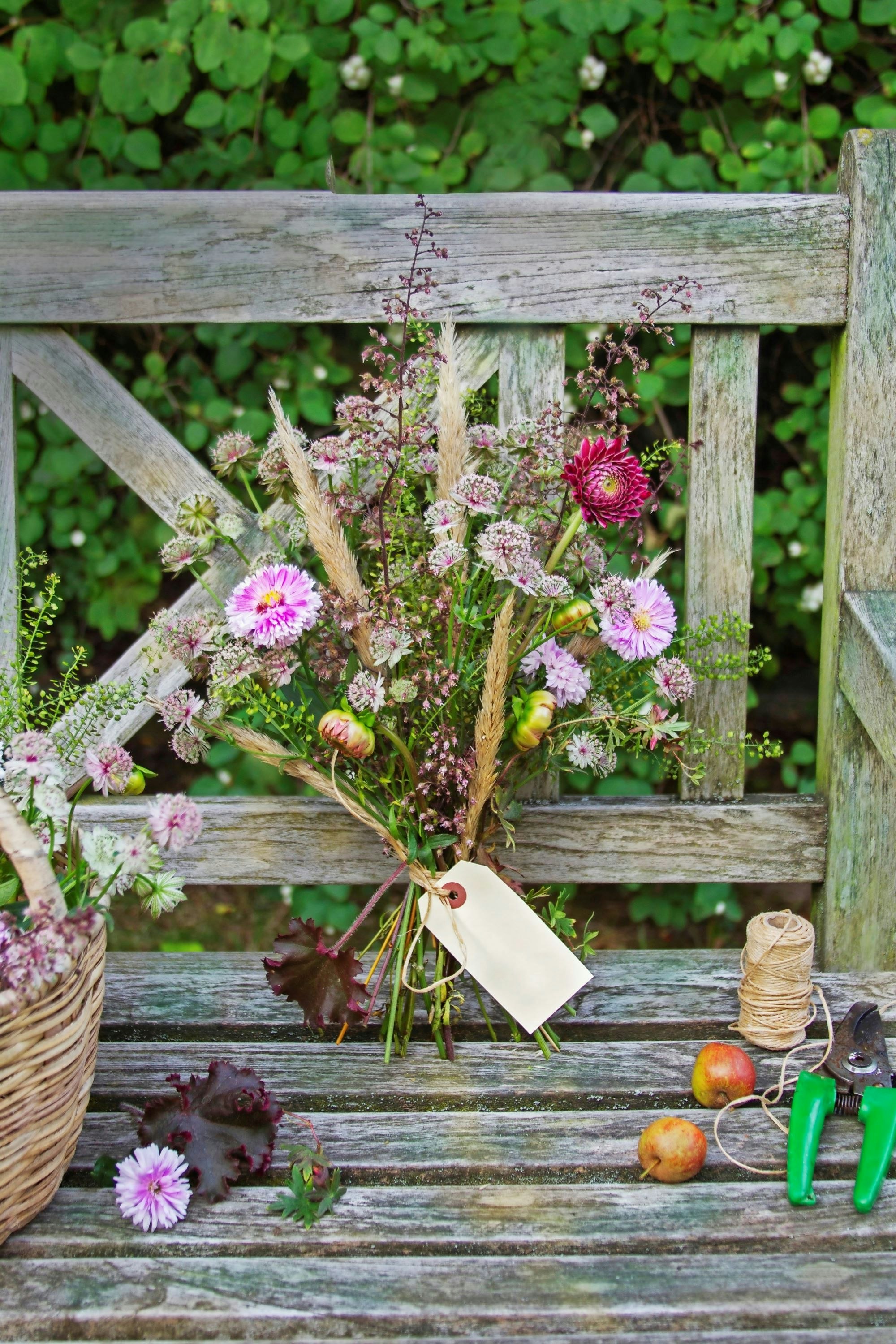 I august, når naturens farver ændrer sig til varmere toner, er enge og grøftekanter et paradis af vilde blomster, græsser, bær og frøstande. Supplér med enkelte blomster fra haven og bind de smukkeste buketter. Få inspiration og guides herunder!