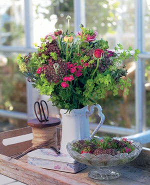 TIP Fyld en glasskål med vand, og læg de blade og blomsterknopper, som du fjernede fra stilkene, i vandet. Det ser rigtig sødt ud, og intet går til spilde.