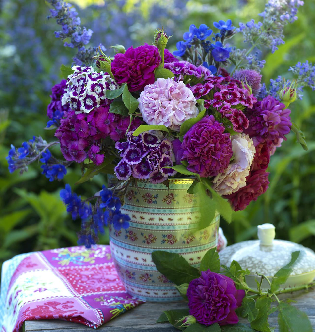 Skal der buketter på bordet, så gå i haven, og lad dig inspirere af både blomster og buske. Hold også godt øje med de smukke grøftekanter, hvor du kan finde de yndigste sommerblomster. Her får du ideer til både høje og lave, tætte og vilde buketter, der bliver ekstra smukke, fordi også vaserne er nøje udvalgt til den enkelte buket.