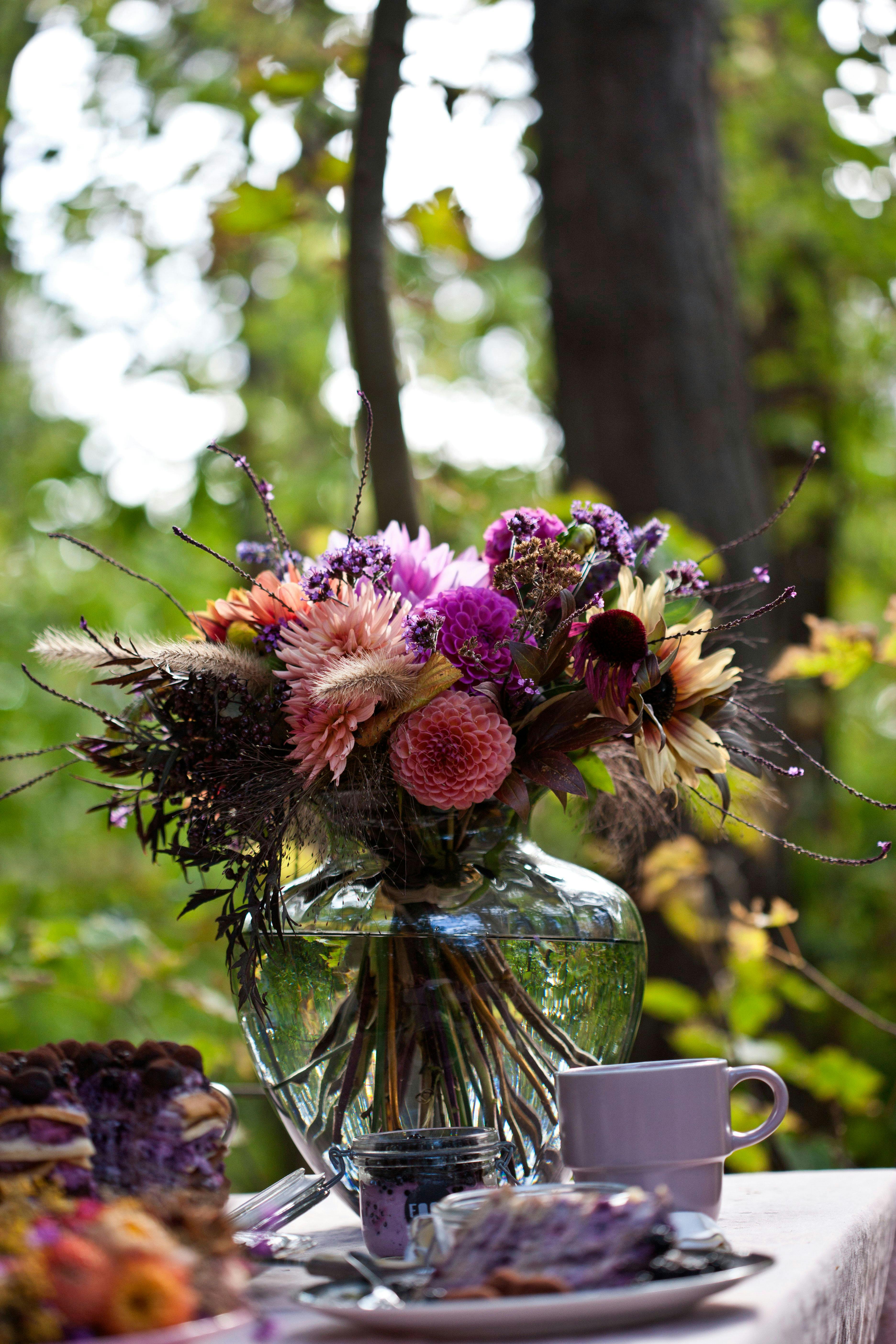På denne tid af året bugner havens bede ofte med så mange blomster, at man ikke behøver at spare på noget. Bind derfor en stor buket til havebordet. Den vil tiltrække opmærksomhed og give gæsterne et smil på læben.