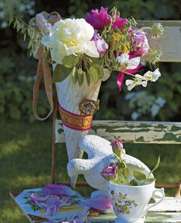 Pæoner er ualmindelige yndige at pynte med. Her kan du se, hvordan du laver en overdådig buket og et sommerligt kræmmerhus