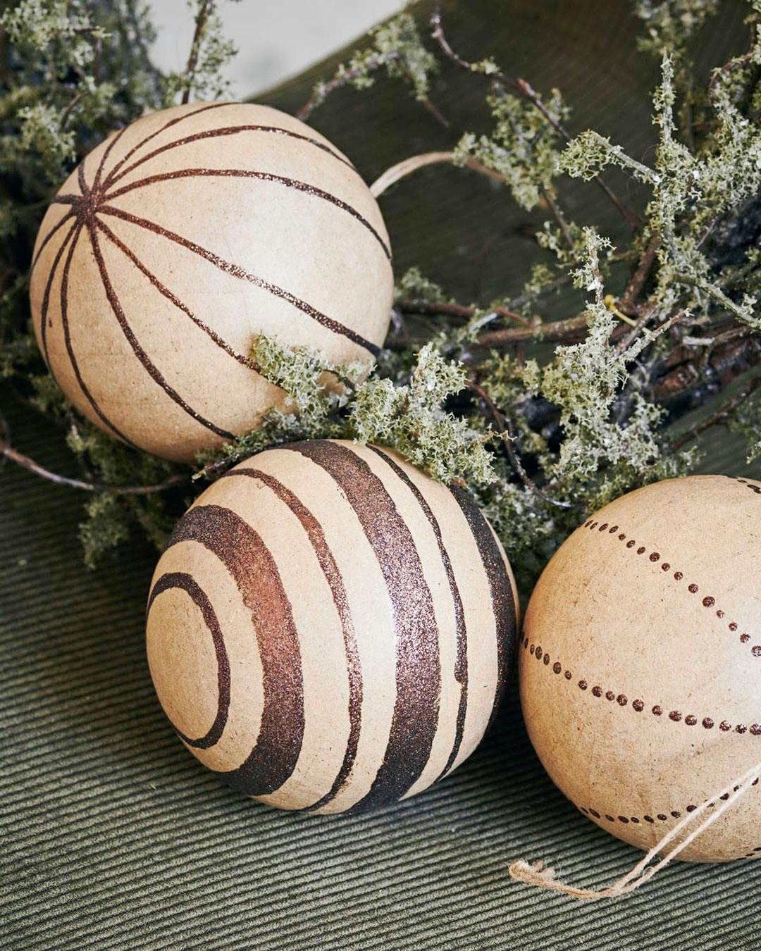 Glimmerkugler i et naturligt udtryk fra House Doctor - passer godt til den afdæmpede oppyntning.