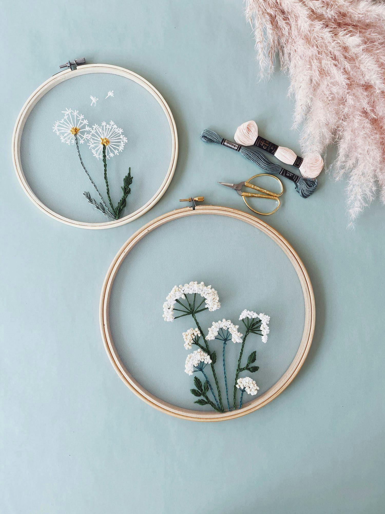 Vi brugte kædesting, fladsting og franske knuder, så det er både sjove og lidt udfordrende projekter. Det skal dog ikke afholde dig fra at kaste dig ud i projektet, hvis du er ny i broderi. Alle teknikkerne kan nemt findes på Youtube. Og ellers følger du blot den nemme DIY-guide herunder!