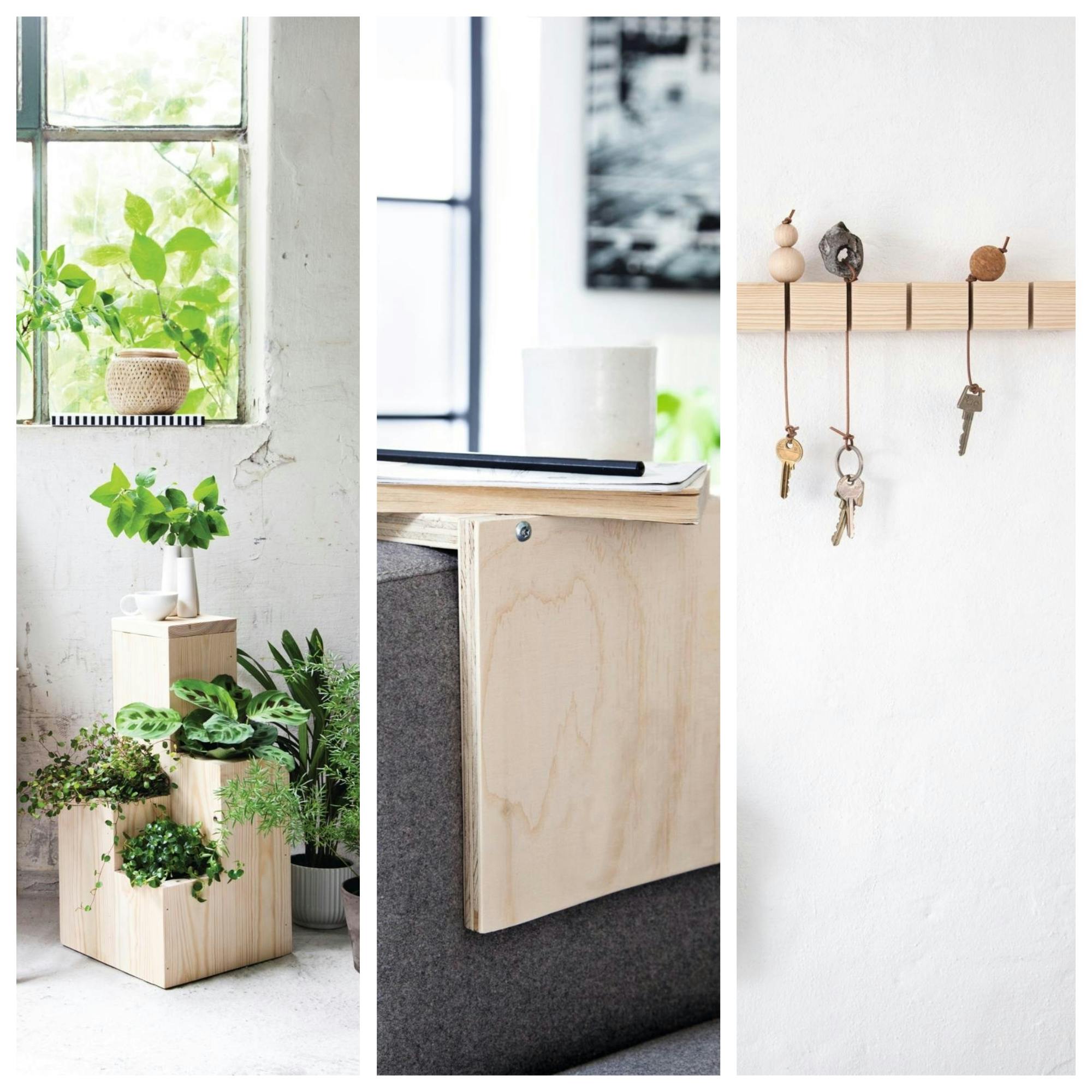 Vi guider dig til 3 supernemme projekter med træ, der vil klæde og gavne dit hjem: Et nøglebræt, en planteopsats og et sidebord.