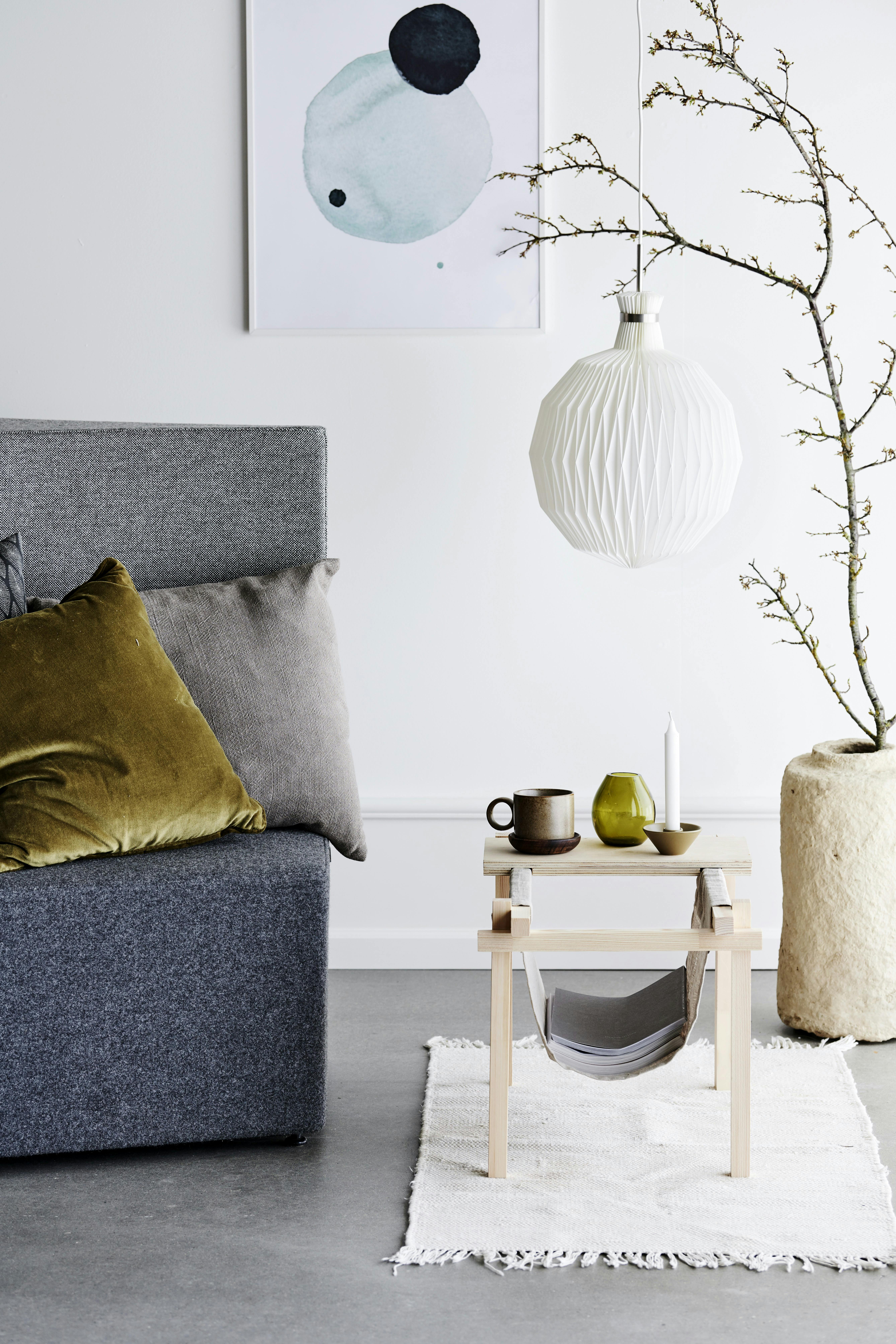 Lav din egen magasinholder i et nordisk look af træ og hør, og kombinér det med en bakkefunktion, så du også kan bruge det som et lille sidebord. Se, hvordan du gør her.