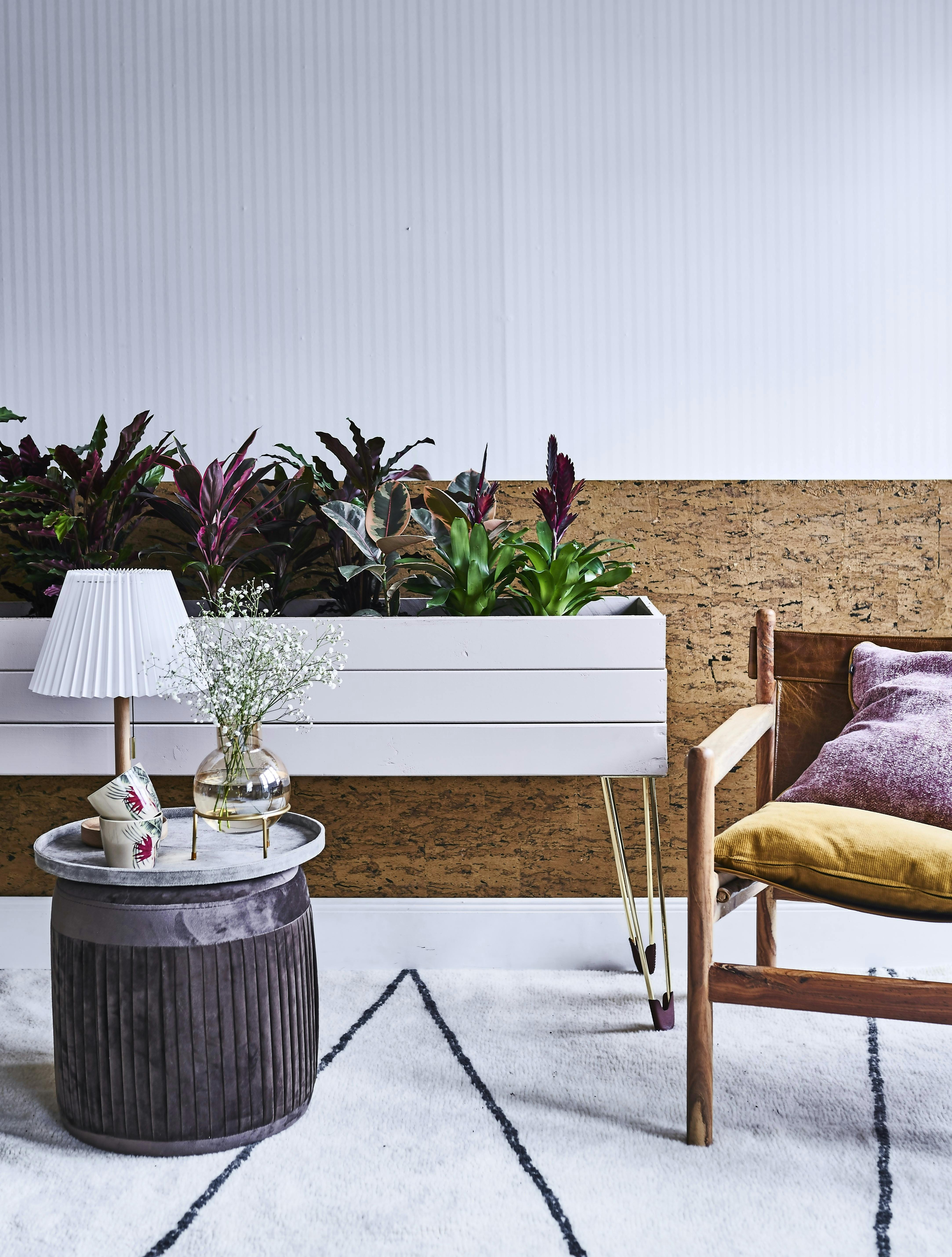 Når du bygger selv, kan du tilpasse størrelse og farver, så plantekassen passer til dit hjems størrelse og stil. Her har vi valgt en feminin stil. Se guiden til at bygge en plantekasse herunder.