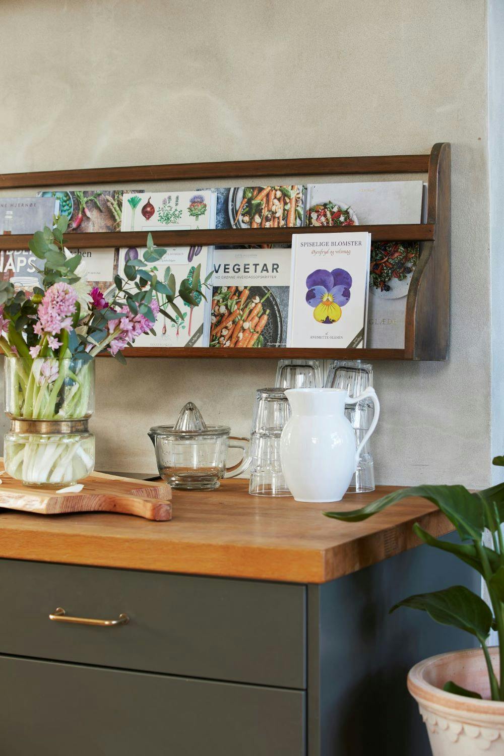 Kogebøger bliver ofte sat hen i reolen, hvorefter de bliver gemt lidt for godt væk og måske endda glemt, når vi endelig skal lave mad. Med en hylde til kogebøgerne er de både lige ved hånden, når du skal lave mad, og du kan dagligt gå og blive inspireret.