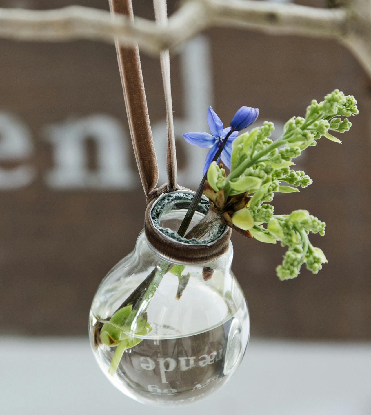Find din indre gør-det-selv-kvinde frem og lave dine egne ting til hjemmet - for eksempel kan du forvandle gamle elpærer til søde, små vaser. Placer gerne flere pærer på en gren eller i et lille træ, og lad forårsblomsterne komme i spil, så hver enkelt pære får karakter af en lille vase.