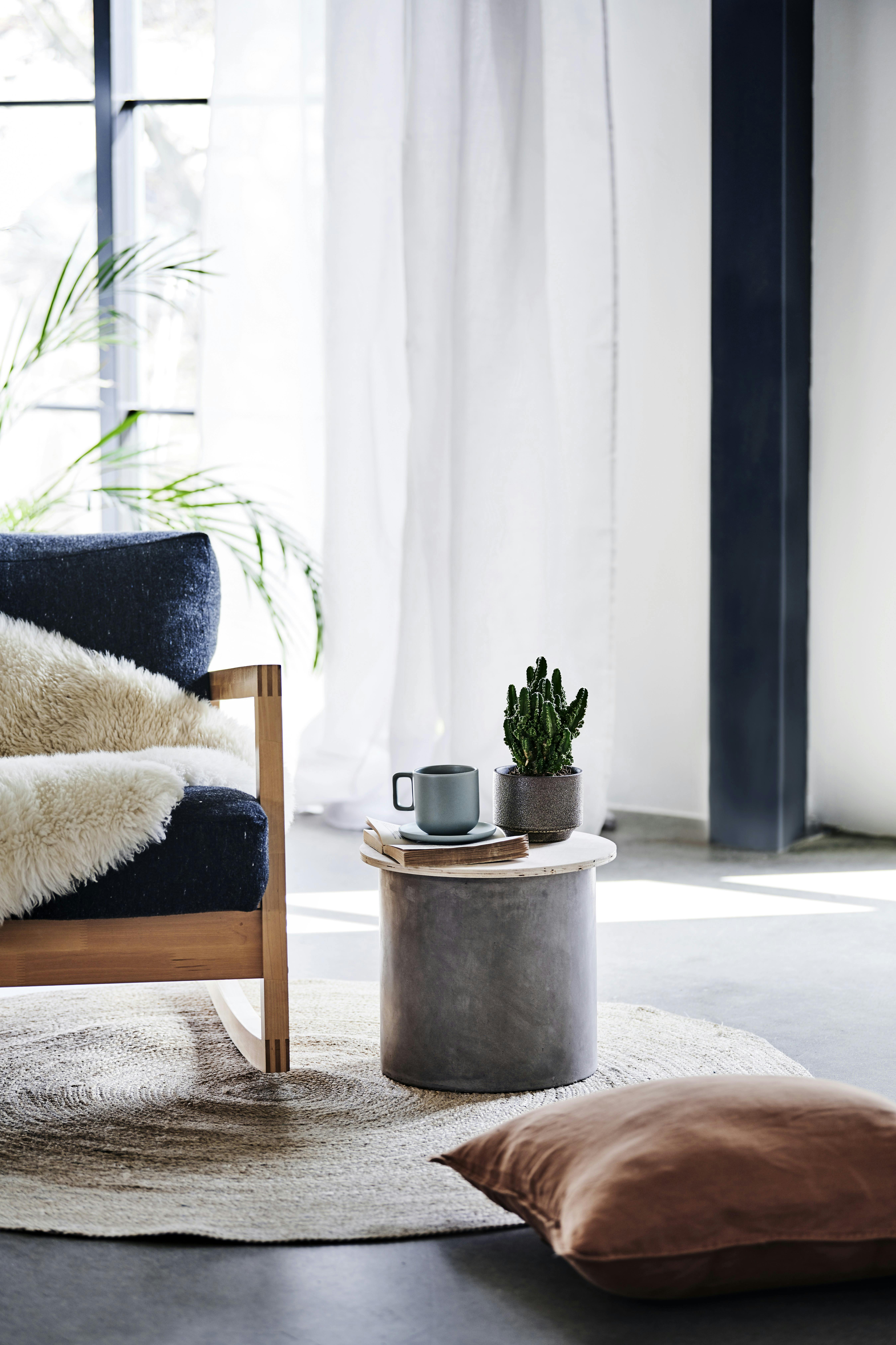 Et rundt sidebord er både smukt at se på og giver samtidig et fint modspil til sofaen eller lænestolen. Kombinationen af beton og træ giver dette sidebord et rustikt og naturlig look, som nemt passer ind i både simpel og kreativ indretning. Bordet her er både nemt og hurtigt at lave. Følg guiden herunder!