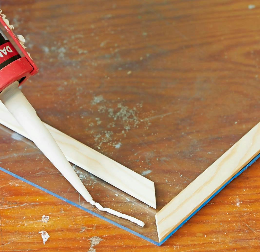 Trin 3: Kom montagelim på et eller begge glas eller listerne, og montér listerne, så de danner rammen.