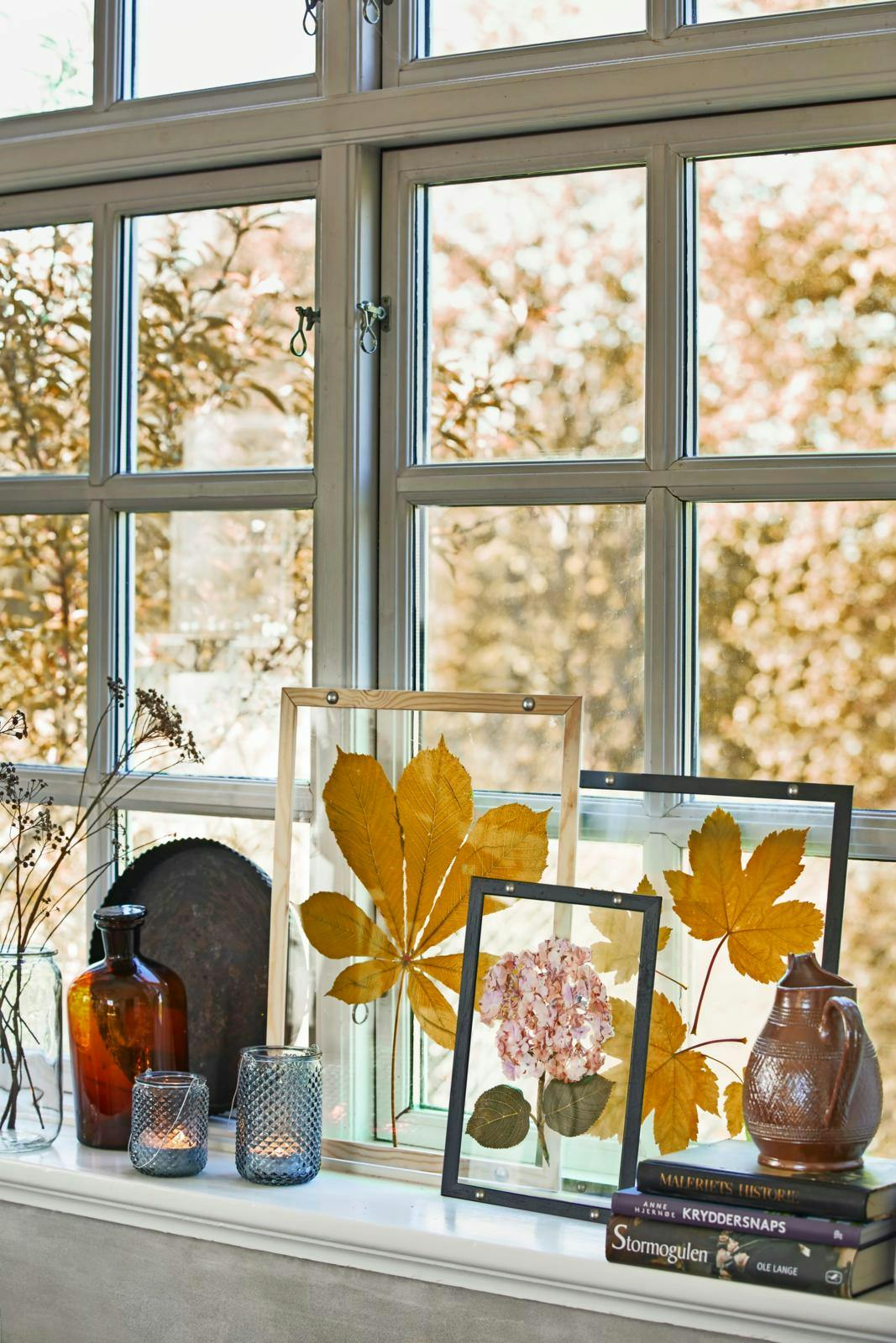 Byd naturen indenfor ved at sætte pressede blade eller blomster i fine, transparente rammer. De er utroligt flotte som del af en billedvæg, men står også smukt i vindueskarmen, hvor lyset kan strømme igennem dem. Og så kan du sagtens lave dem selv! Vi viser dig her, hvordan du gør: