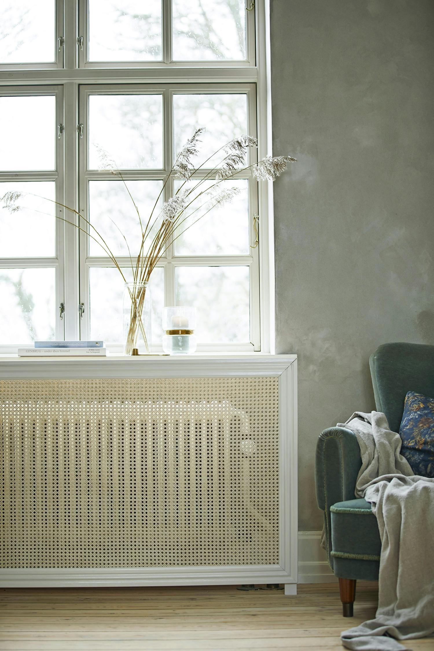 Radiatorer er uundværlige i boligen, men sjældent kønne at se på. Har du en radiator under vindueskarmen, kan du nemt dække den med en hjemmelavet ramme af fransk rørflet.