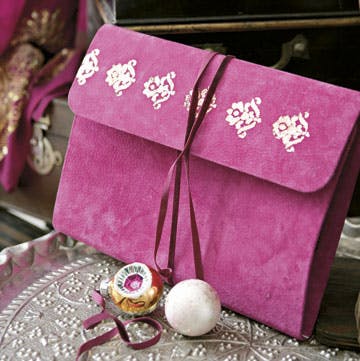 11. Sæt velourbåndet fast med lim imellem papirforet og ruskindet.
